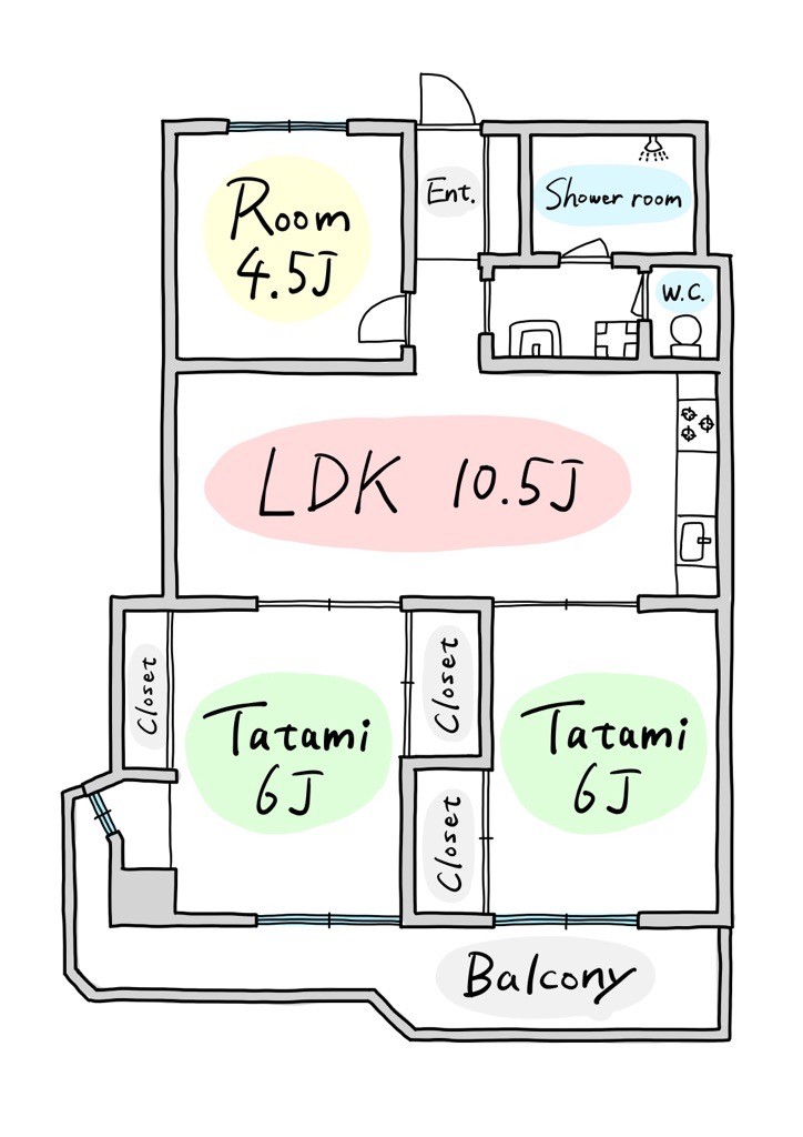 - 間取り:3LDK ( 和6J×2 / 洋4.5J / LDK10.5J )