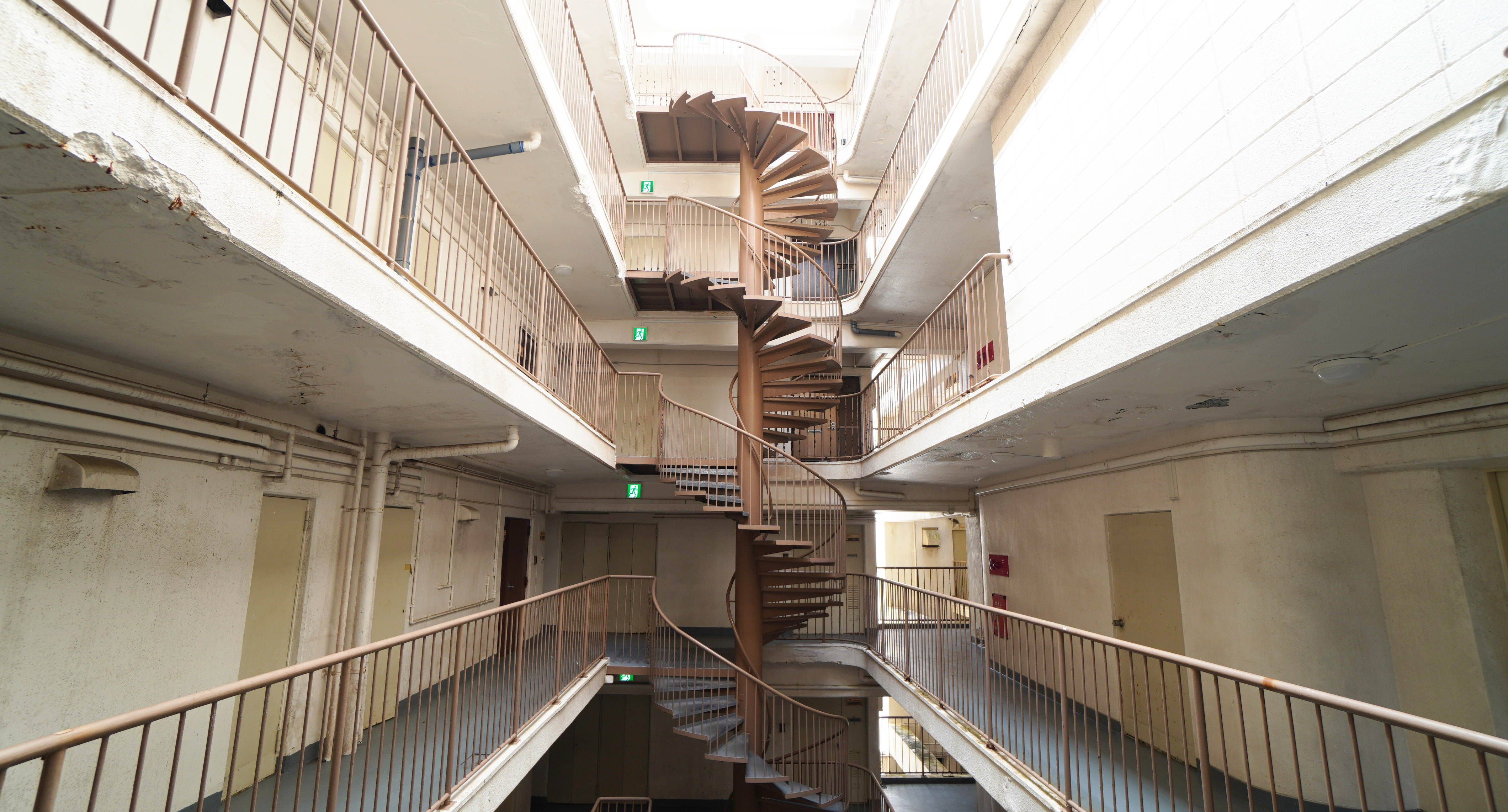 さらに、このマンションの特徴として、共用の廊下や螺旋階段があります。