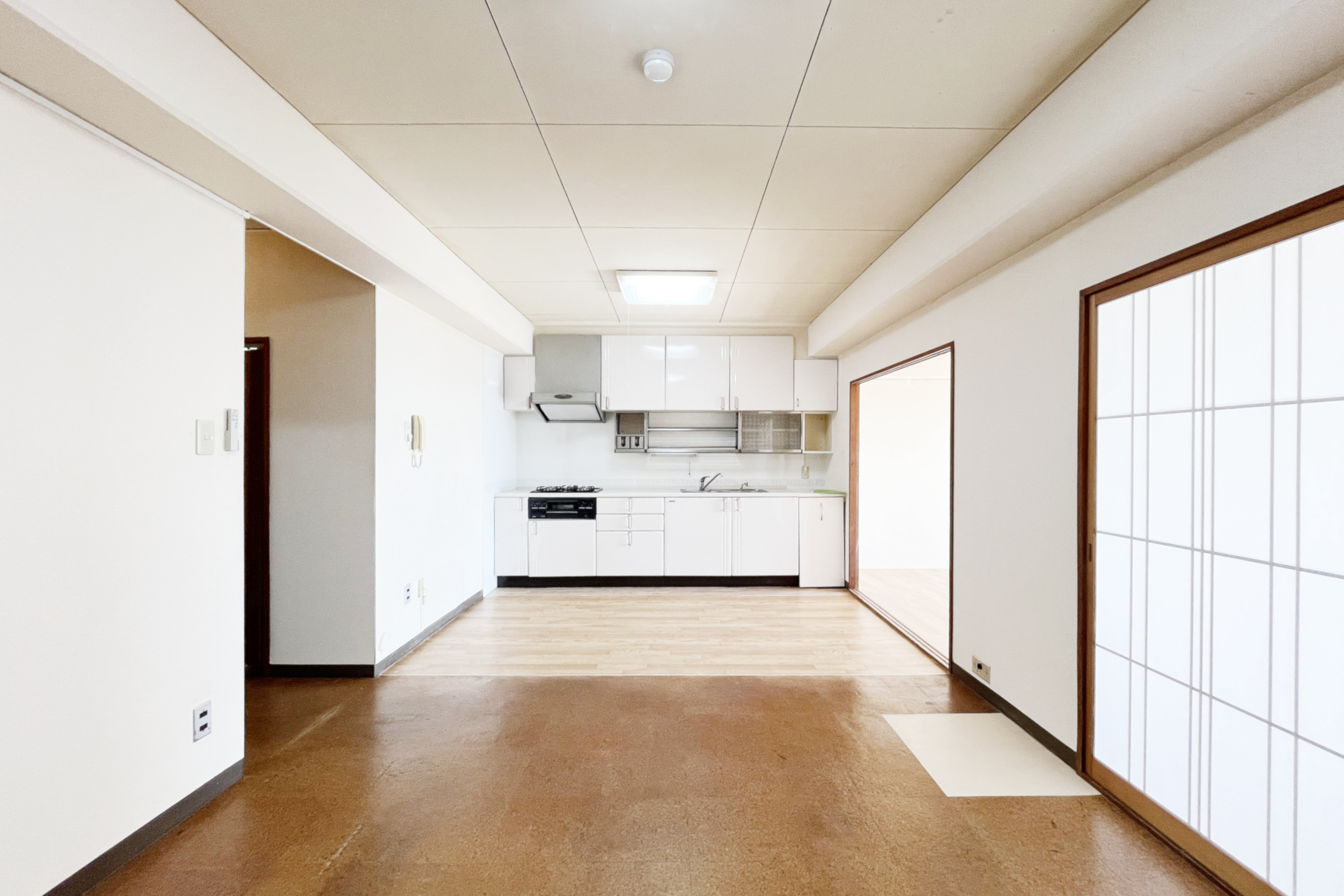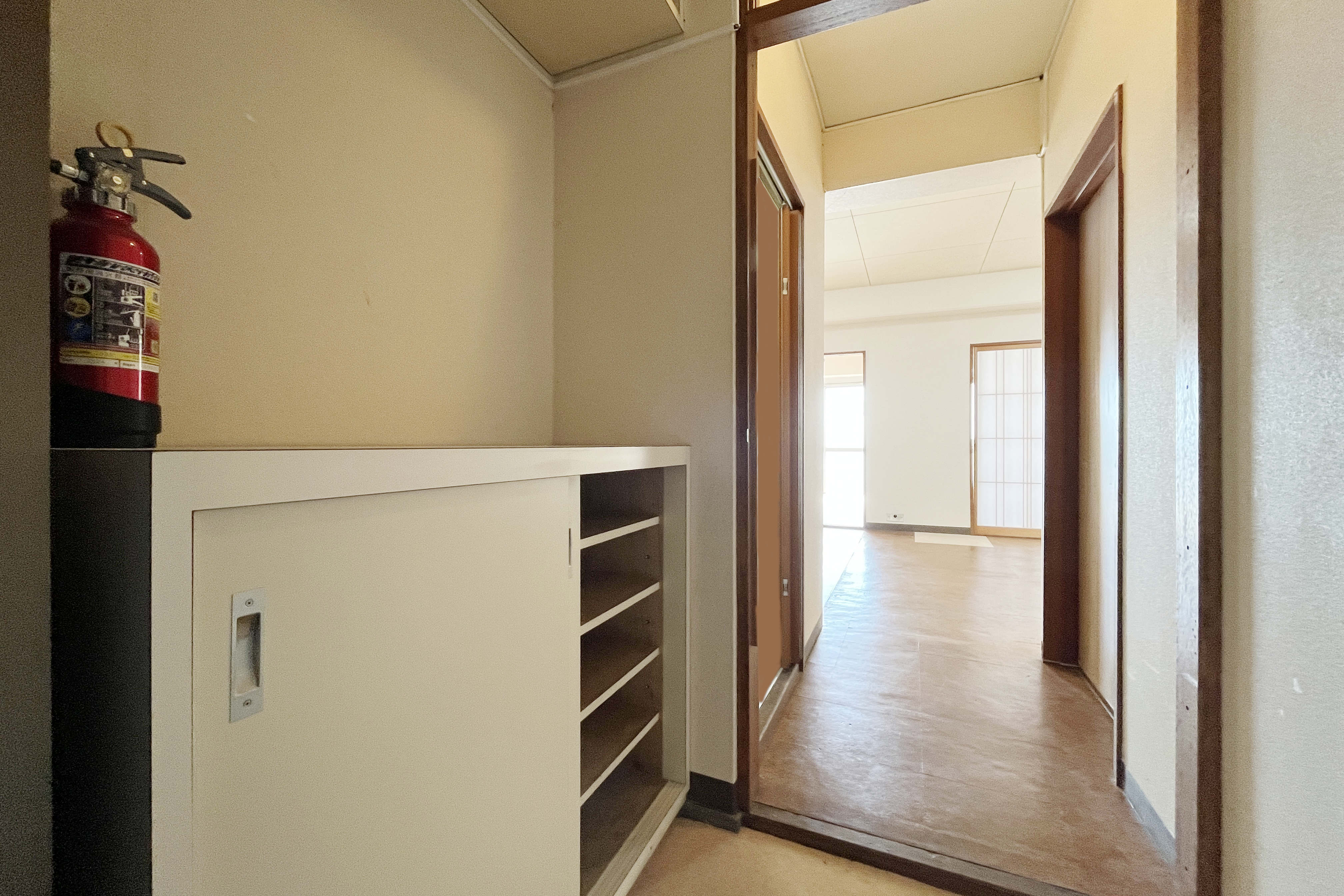 玄関入ってすぐ右側に4.5帖の洋室がひとつと、LDKが10.5帖のお部屋。