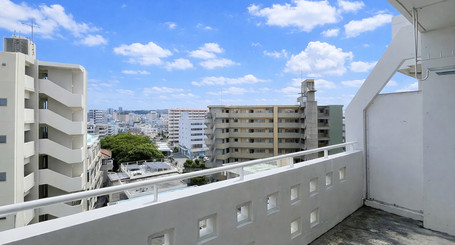 奥行きのあるバルコニーは、広々としており眺めの方向は58号線側ではなく住宅街になります。