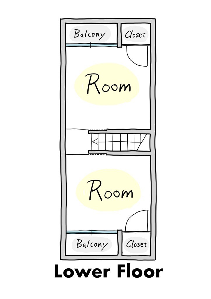 2つの居室はどちらも小さいバルコニーと収納がついています。