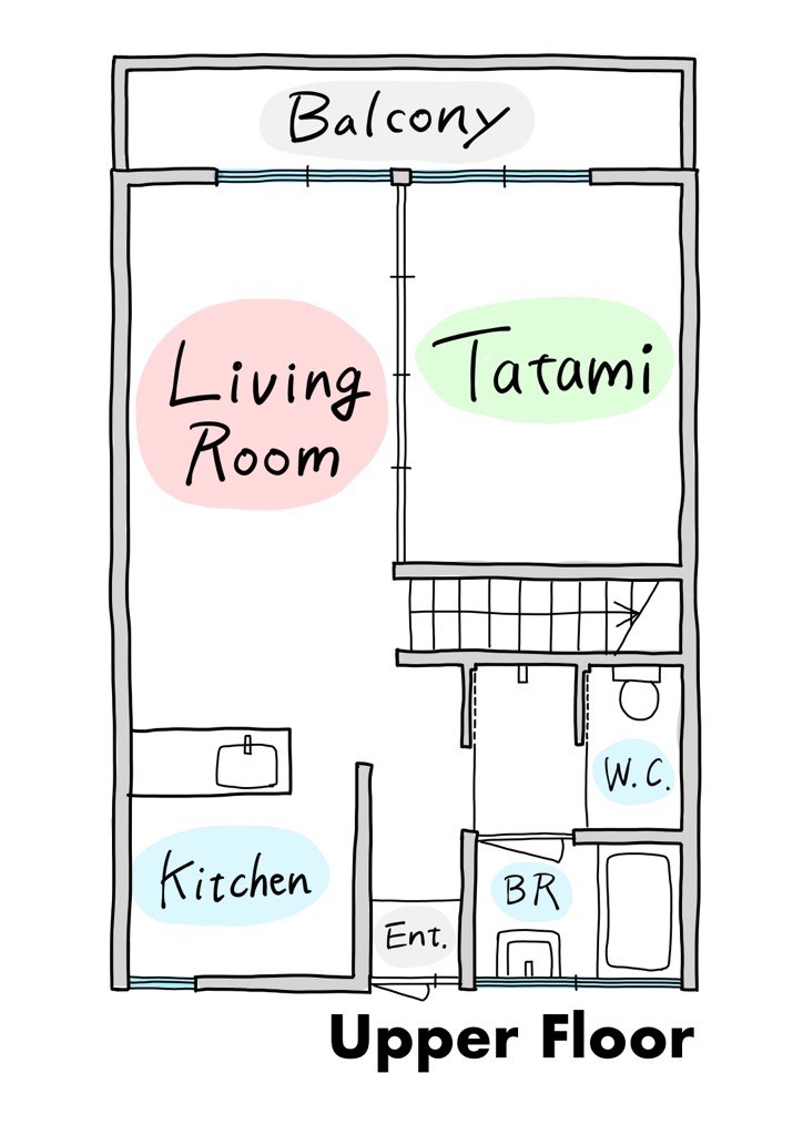 さて、こちらのお部屋はメゾネットタイプになっており玄関からの直通フロアにキッチンとリビング、それから和室。