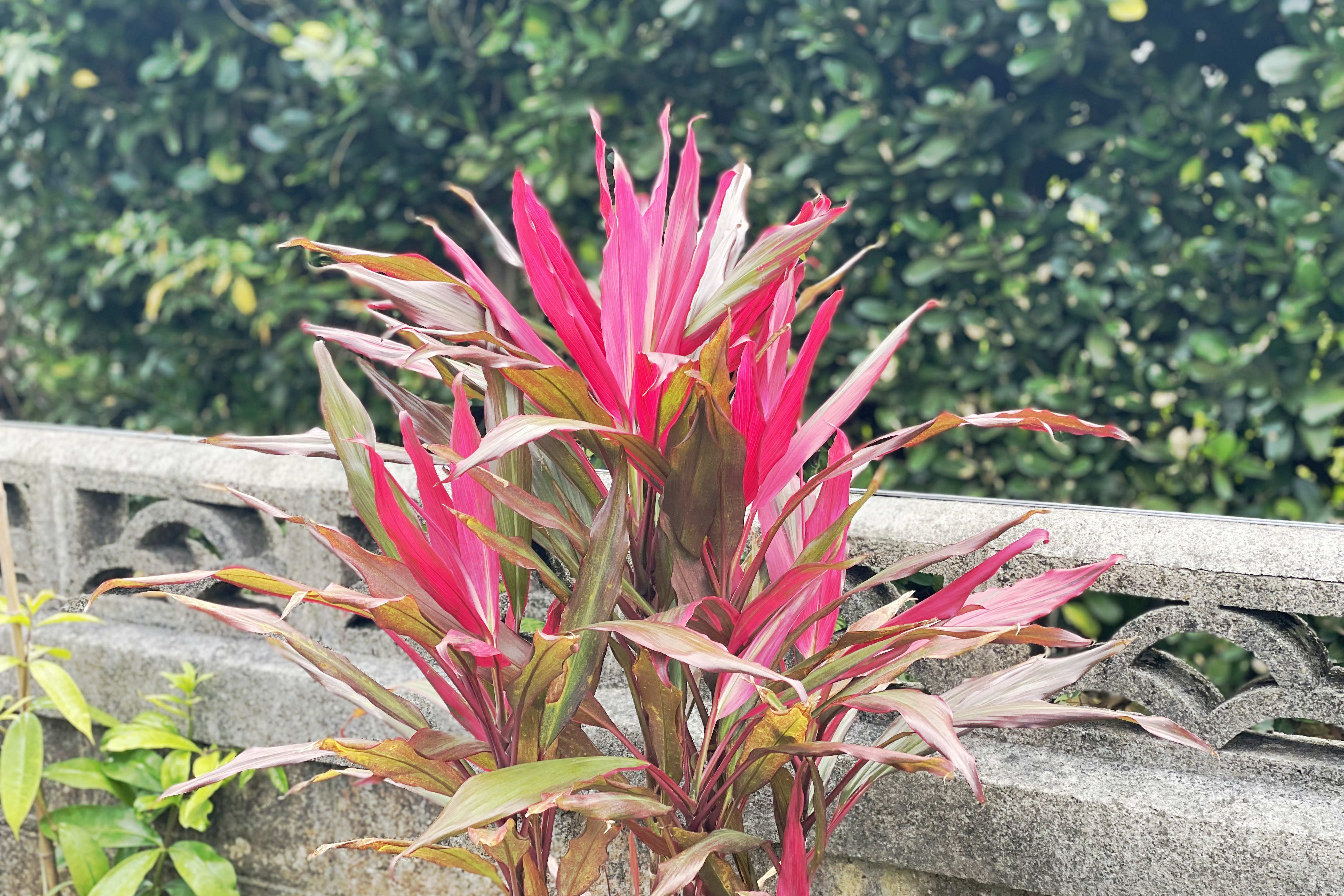 ブロック塀のところには沖縄らしい植物が生えていて、今は見られないがかつては入口に黄色いアラマンダの花が美しく咲き誇っていただとか。