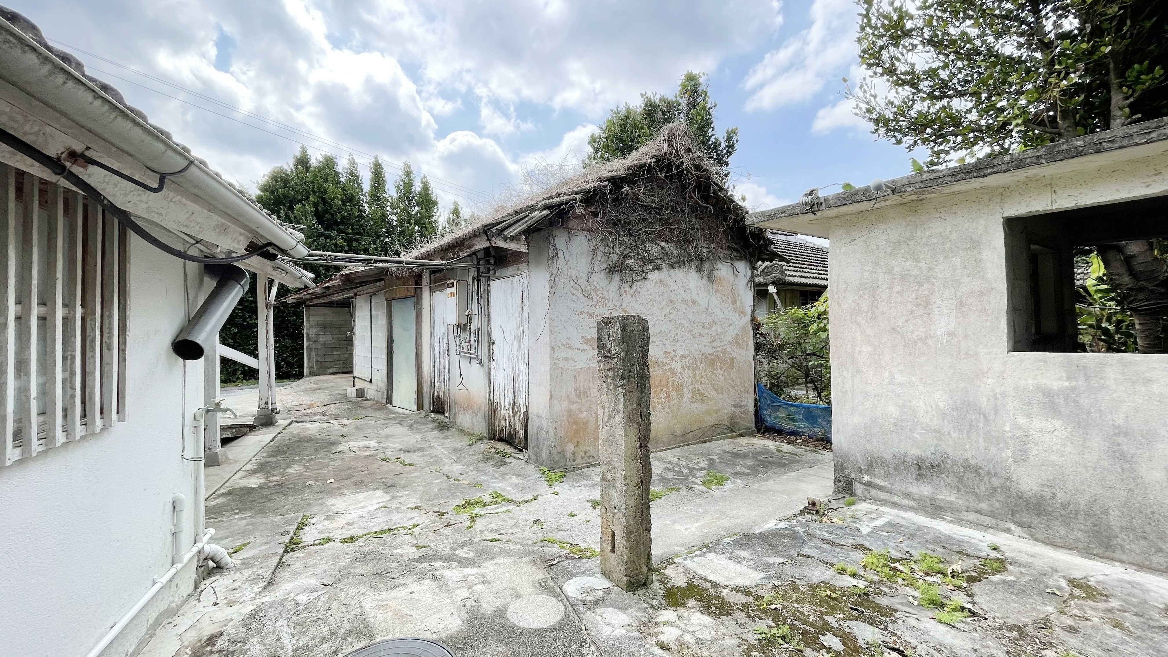 建物の裏手にはフクギの防風林が広がり、敷地内には母屋の他に倉庫、かまど、浴室がある。