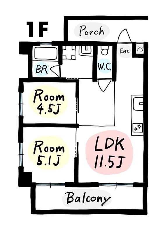 - 間取り:1F : 2LDK / 2F : 1LDK (各45㎡)