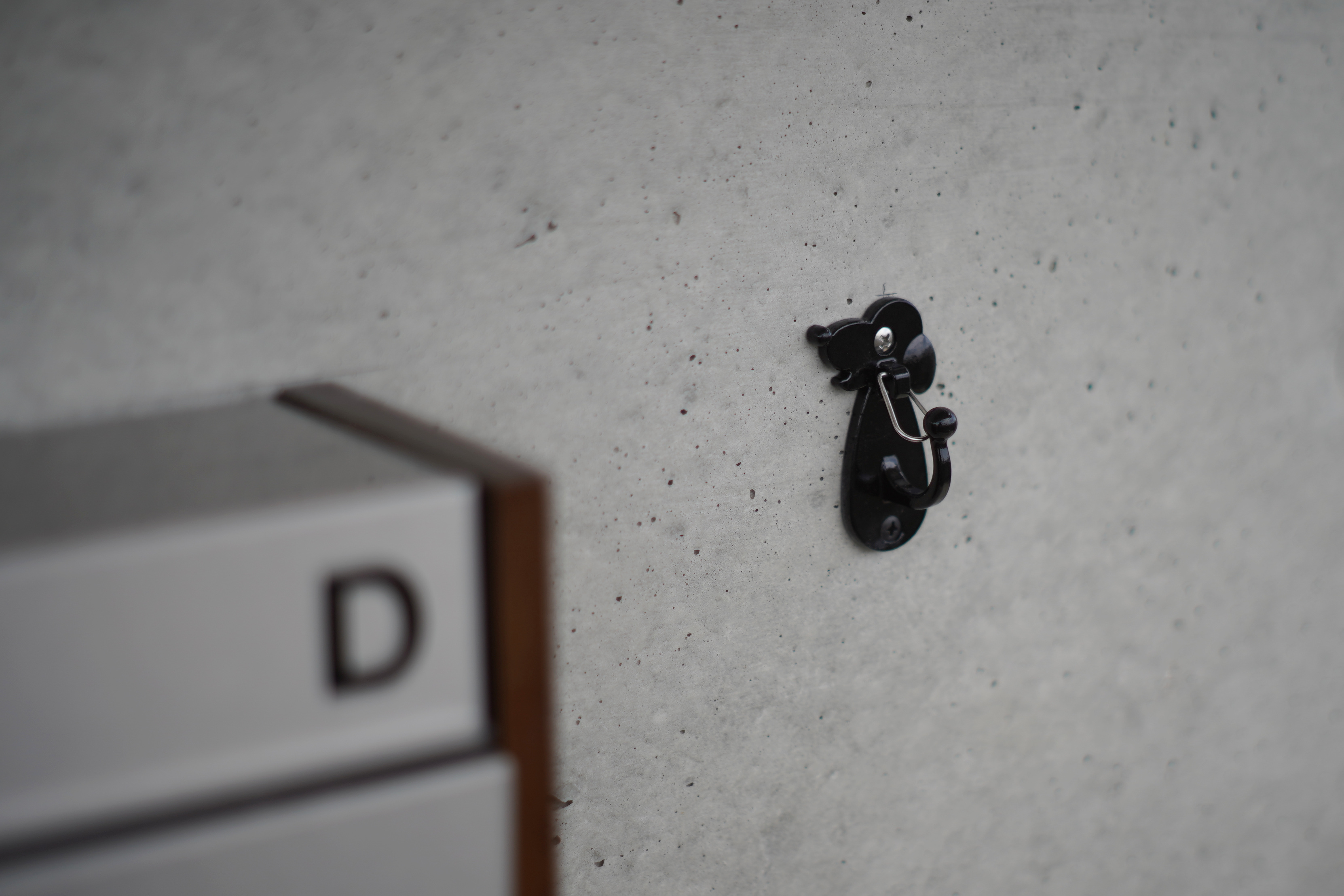 それに、玄関横には犬の形をしたリードフックが…。どこまで細かいんだ…。脱帽です。